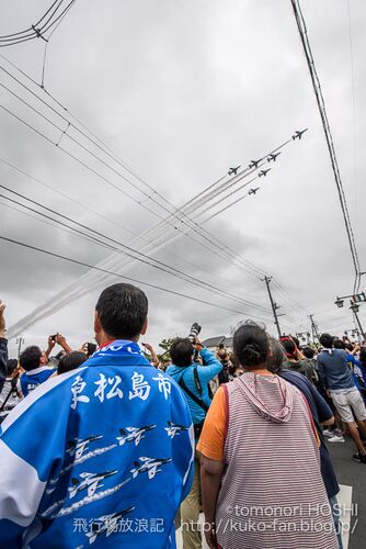朝から降り続いていた雨も午前中には上がり、開会式で挨拶した松島基地司令の言葉通り天気は回復傾向。5番機の天候調査(という名の単機による展示飛行)ののち、のこりの全機が離陸し、航過飛行を見せてくれました。イベントでのフライトは諸事情で高度を高…