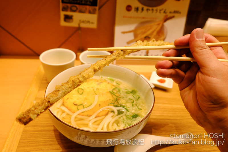 ほうびの槍に見立てたのはごぼう天。およそ32cmあるそうで、揚げたてなので衣はパリッパリでごぼうはサックサク。そのままいただくもよし、ダシに浸して食べるもよし。一緒に出てきた薬味の柚子胡椒をちょっと付けて食べてもうまいです。